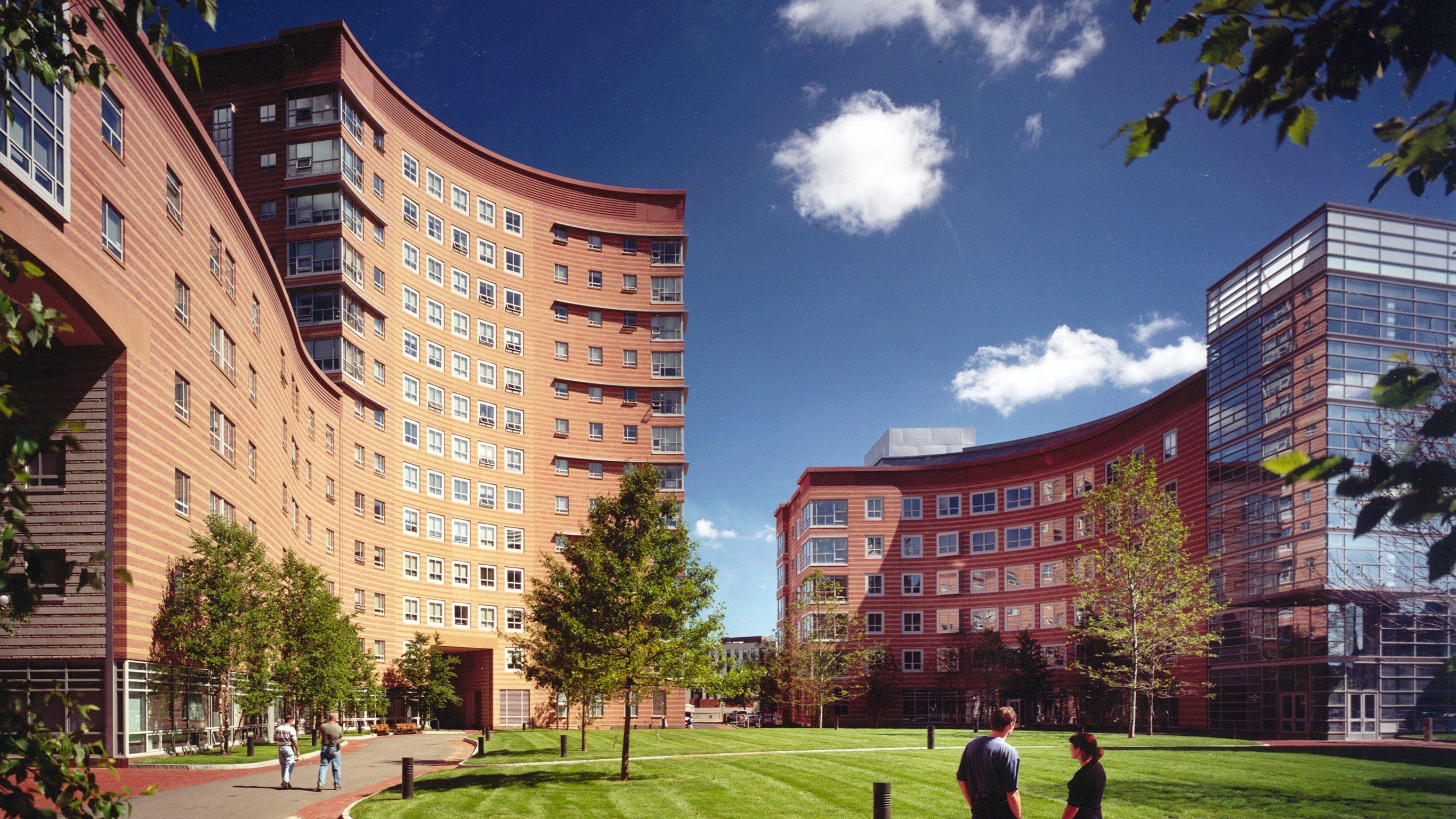 These three signature Residence Halls provide Northeastern University with 1,050 undergraduate beds. The buildings organize the Campus' West Village around a major open green space and strengthen the University's presence along one of Boston's major avenues, directly across from the venerable Museum of Fine Arts.